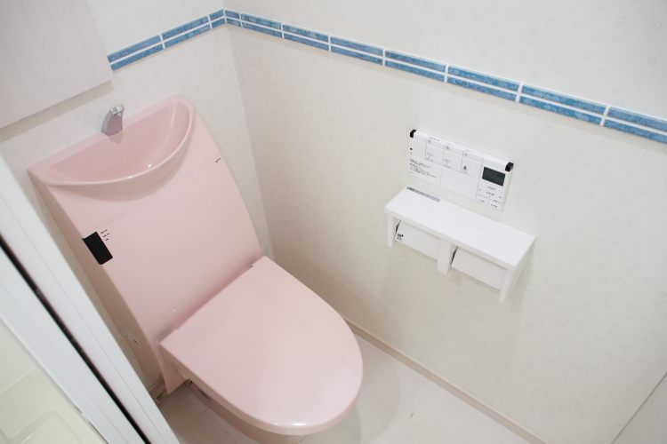 バス・トイレ別。ピンク色の可愛らしいトイレはウォシュレット付きです。 -