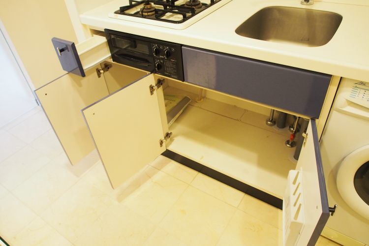 • キッチン下には包丁入れ、調味料入れ、収納スペースがあります。