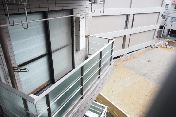 • バルコニーか右側を眺めた景色です。少し離れて建物が建っています。