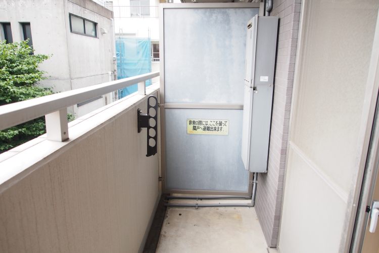 • ルコニーを出て右側です。隣のバルコニーとは間仕切りで仕切られています。