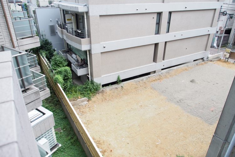 • バルコニーから左下を眺めた景色です。左前は空き地になっています。