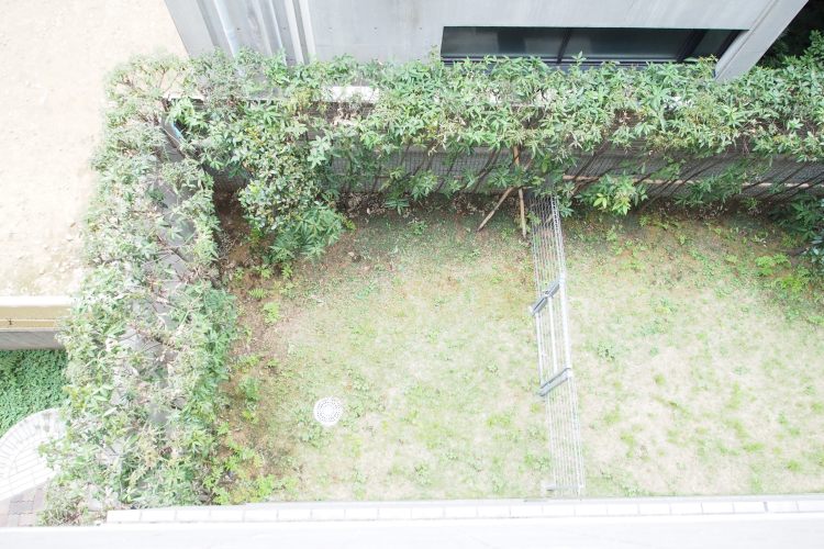 • バルコニーから下側を見た景色です。下のお部屋はテラスになっているのですね。