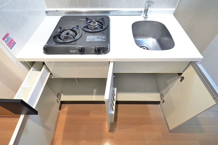 • 火力の強いガスコンロが2口付いています。作業スペースが少ないのが残念ですが、まな板などでシンクの上を使うと良さそうです。