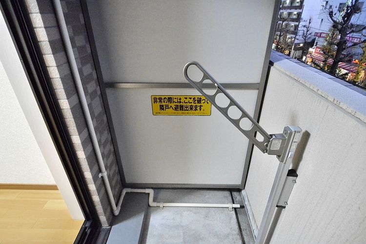 • バルコニーを出て左側です。隣のベランダとの間には仕切りがあります。
