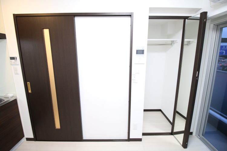 やっぱり新築は良いですね。必要な設備がいろいろと揃っています。共用部はオートロックに宅配ボックス付き。居室内は2口ガスコンロ、独立洗面台、ウォシュレット付きのトイレ、そしてどこもかしこもとても綺麗です。
