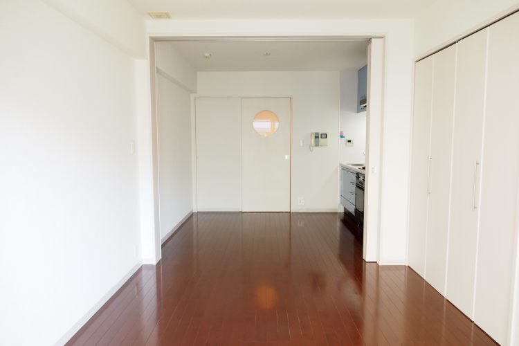室内は2人暮らしも出来る広さ。部屋の真ん中の扉で室内を仕切る事が出来、広めの1Rとしても1DKとしても利用することが出来ます。