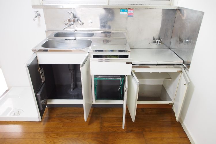 • なんだか懐かしいキッチン・・・。古さが気にならなければ、調理場、シンクが広く使いやすそうです。