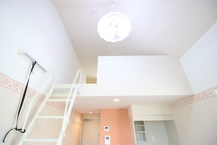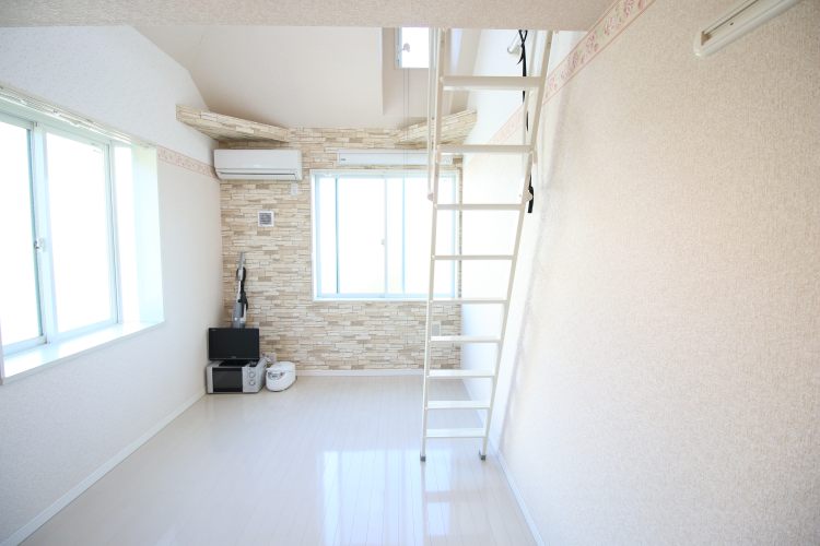 そんな憩いの空間のこちらのお部屋は、広々としたロフト付き。天井が高く、窓があっちにもこっちにも。それで、56,000円?その価格で良いのかしら・・・?