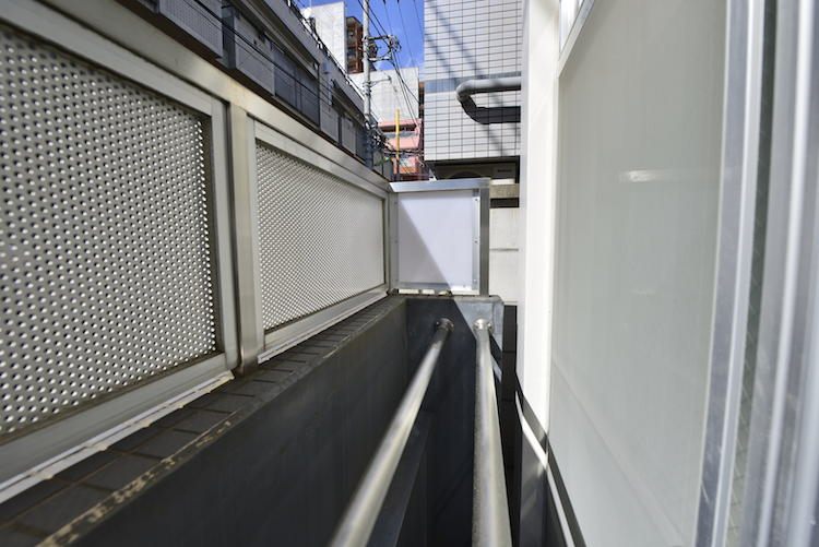 • 窓から左側を見た景色です。1階ですが、外から見られないように目隠しが設置されています。