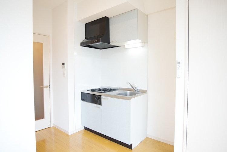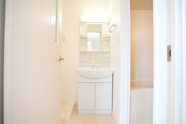 今回の物件は特徴的な間取りをしており、水周りが廊下の途中ではなく居室の奥に位置しています。廊下にキッチンやお風呂がある場合、冬になると料理やお風呂に入るとき寒いのですが、この間取りだと、部屋から出る事なく済ます事が出来ます。