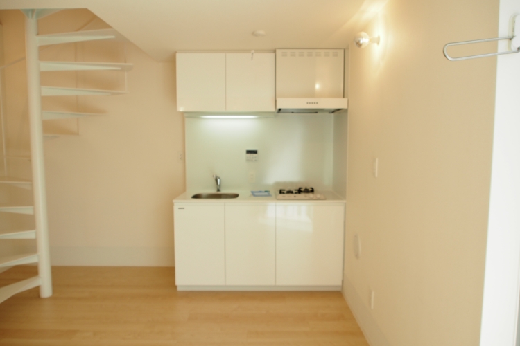 螺旋階段を登ると2階へ。寝室とリビングがしっかりと分かれていますので、2名入居にもお勧めです。 -