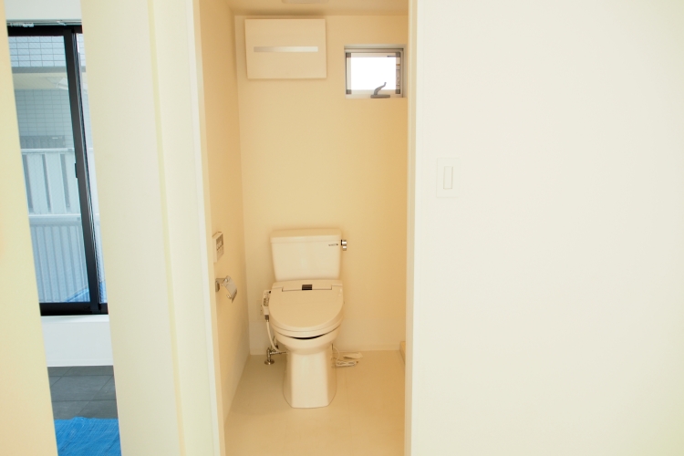 バス・トイレ別、トイレはウォシュレット付きです。鏡の後ろが収納になっている独立洗面台が設置されています。 -