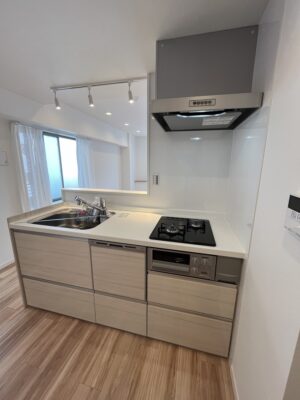 新規に入れ替えられたばかりのキッチンは、愛でたくなるような美しさ。料理へのモチベーションが湧き上がります♪