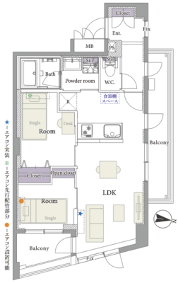 北側バルコニーは眺望こそ望めないものの、隣家の壁に遮られていないため、複数の窓を設けることができ、通風・採光に優れています。