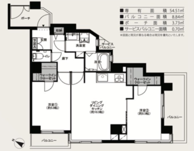 | 間取り | 2LDK+2WIC / 54.51㎡ |