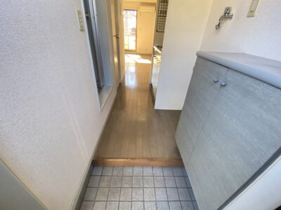 コンパクトながら使い勝手の良い玄関スペース。収納キャビネットが備わり、玄関まわりをスッキリ保てます。