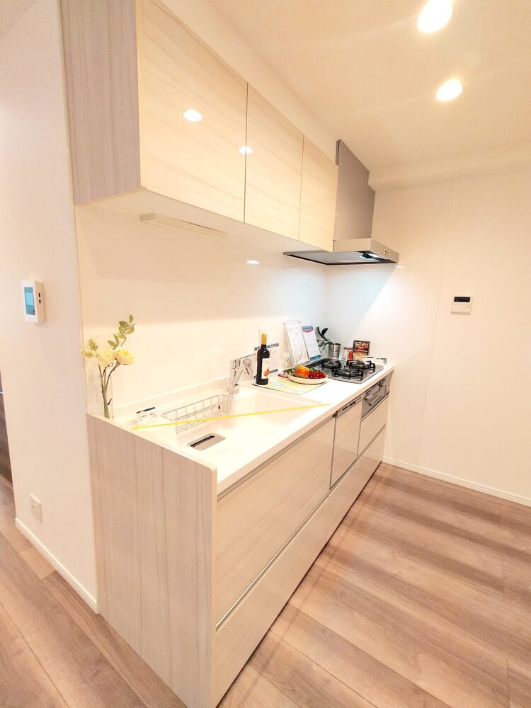 暮らしを支える充実のキッチン。食洗機やお手入れしやすい壁面が、日々の家事を軽やかに。