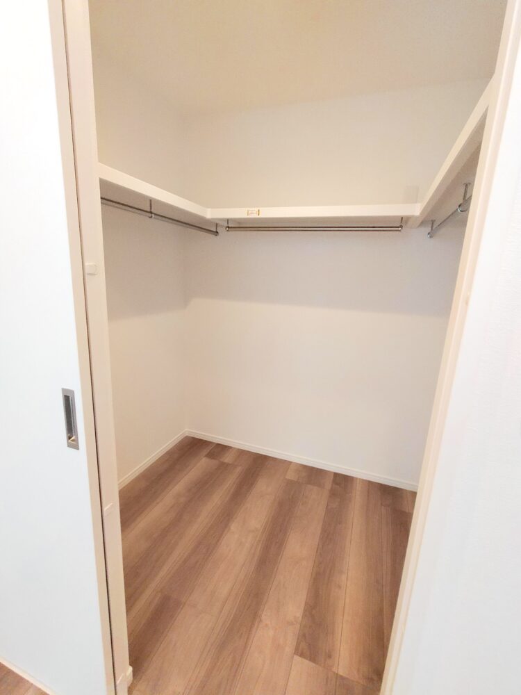 大容量のウォークインクローゼット。アイテムは一箇所にまとめて、住空間をより美しく。
