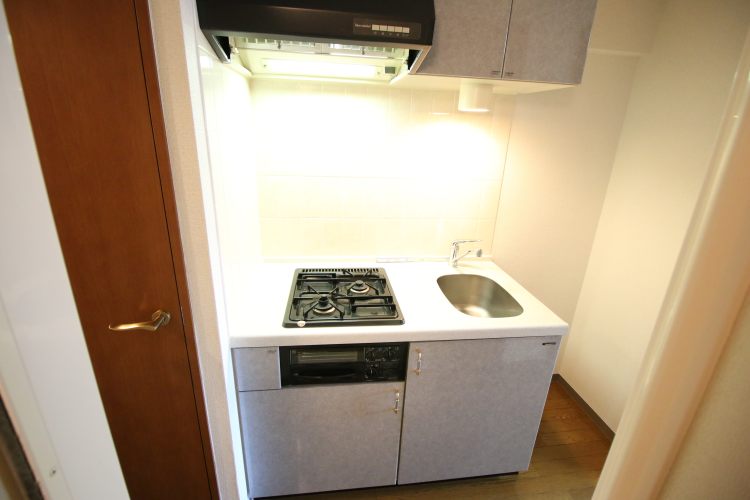 室内の設備も充実しています。バストイレ別、浴室には浴室乾燥機付き、キッチンは2口ガスコンロ+グリル付きです。その分、少しお値段は上がりますが、駅近の充実設備をお求めの方には、オススメのお部屋です。