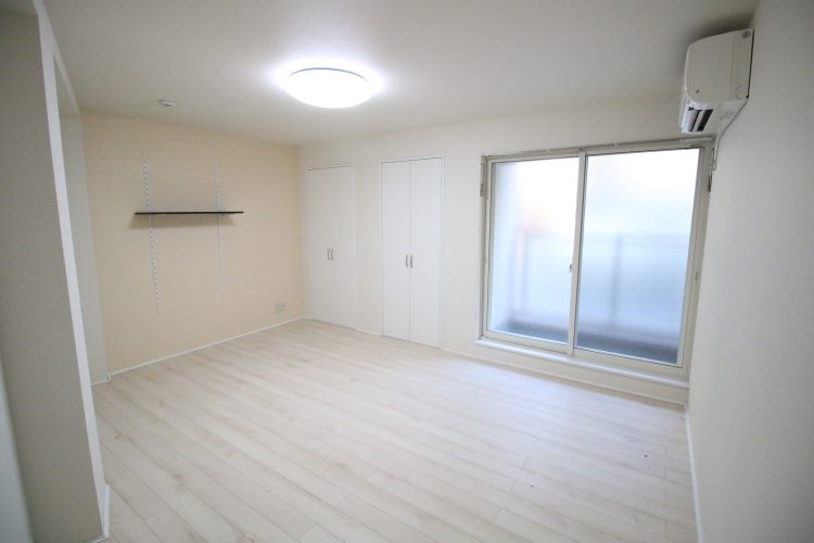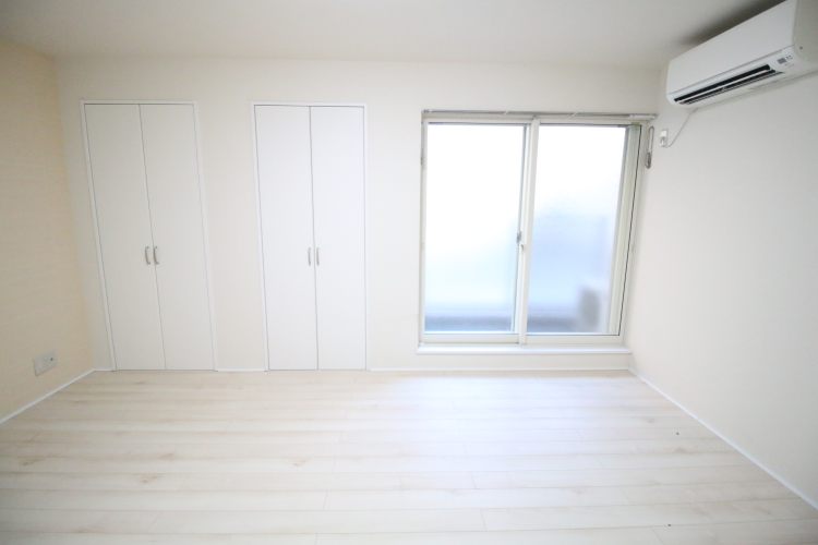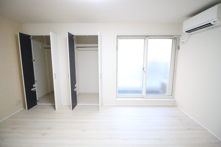 お部屋の中はとてもキレイな状態です。ホワイトを基調とした優しい色合いのフローリングが用いられ、室内は少し広く感じられます。荷物が多い方には重宝される、2つのクローゼットが備わり、1つは奥行きが広く、荷物がたっぷりと入りそうです。