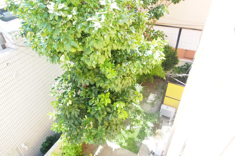 • 窓から右下を見た景色です。窓から緑が見えるのが気持ちのよい、落ち着いた環境です。