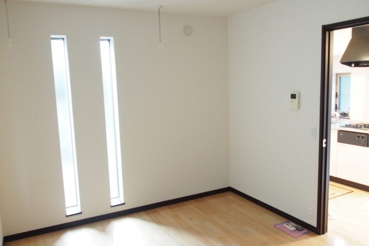 窓が多いお部屋で、エントランスドアにスリガラス窓、キッチンに小窓、居室内に二面採光の窓が付いています。