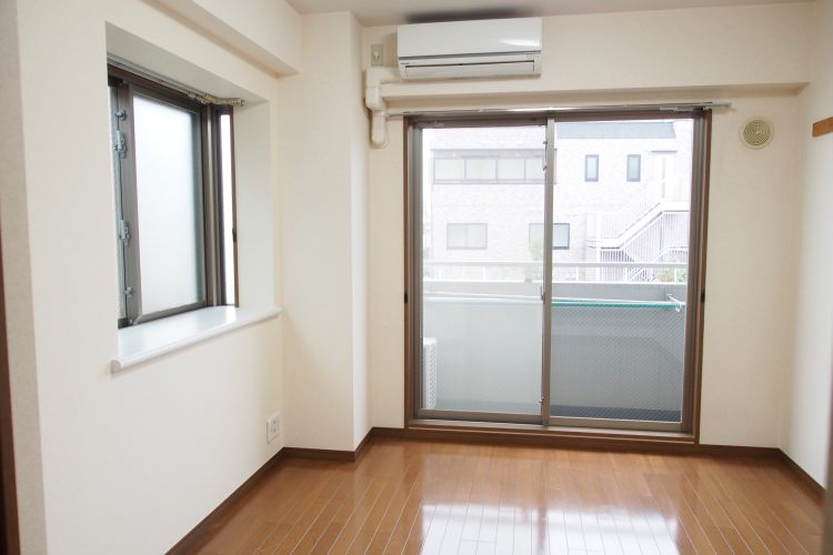 こちらのお部屋でお勧めしたいポイントは、窓。居室内は二面採光で、1つは出窓です。窓前を可愛い小物等で飾ると素敵になりそうです。窓向きは南向きと東向きで、南向きの窓前は空き地ですので、日当り・風通しともに良好ですよ。嬉しいことにキッチンにも窓が付いています。