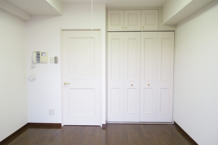 何よりも気に入ったのは、居室内の扉。どれも真っ白でドアノブはゴールド。天井まであるクローゼットはお部屋をコーディネートする上で、きっと良い味を出してくれることでしょう。