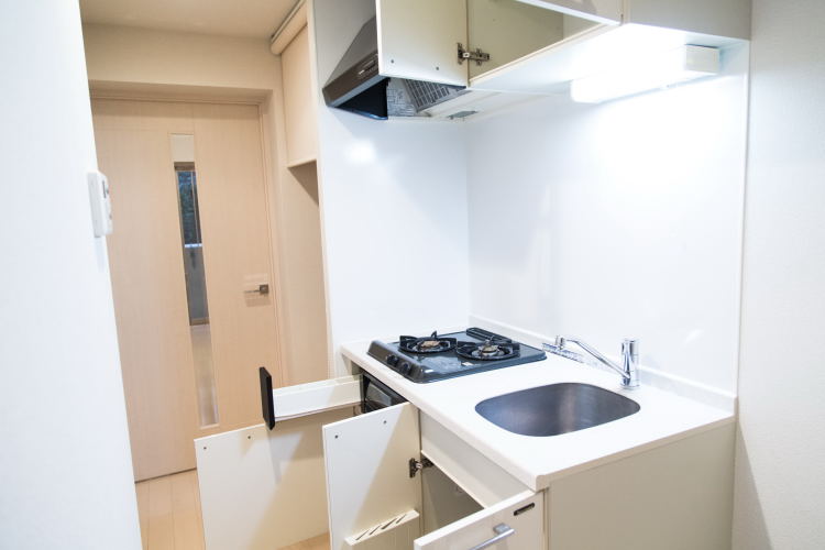 • 火力の強いガスコンロが2口。調理場が少し狭い為、シンク上にまな板を置く等して利用するのがお薦めです。