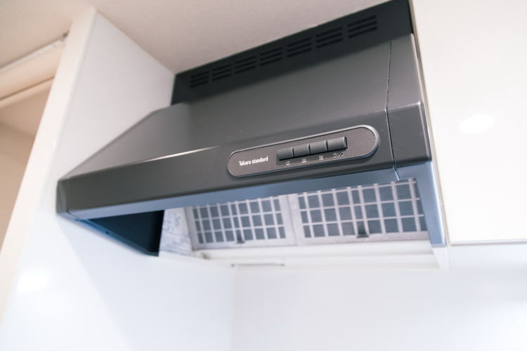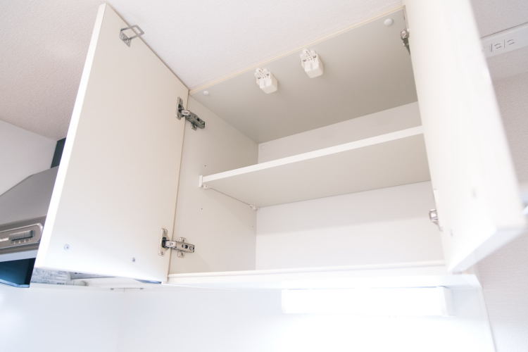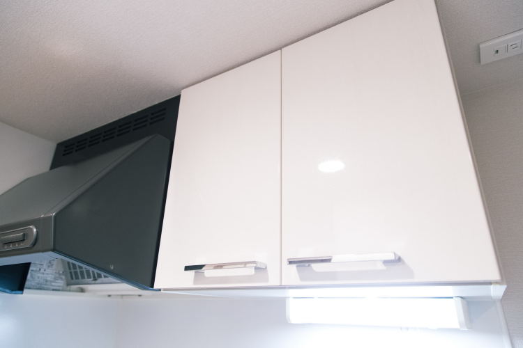 • 上にも収納スペースが付いています。レンジフードもしっかりしています。