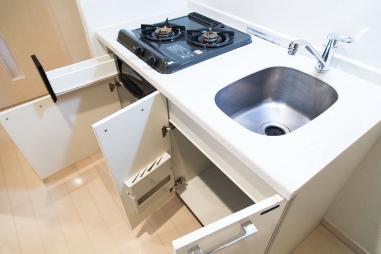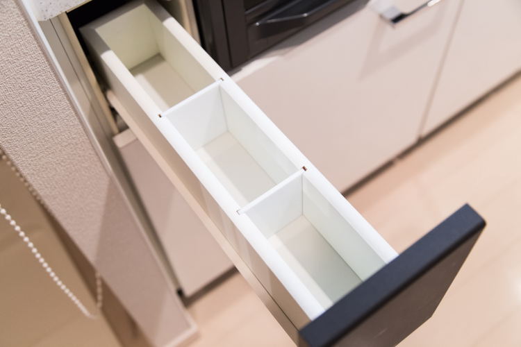 • キッチン下には包丁入れ、調味料用収納、収納スペースがあります。