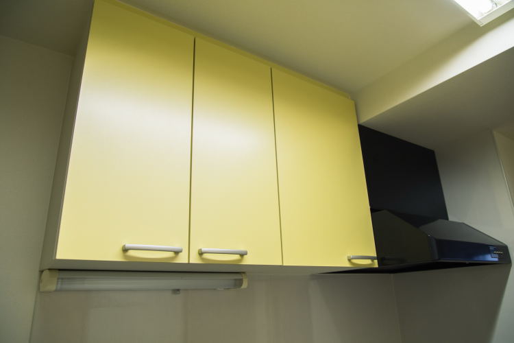 • 上にも充分な収納スペースが付いています。レンジフードもしっかりしています。