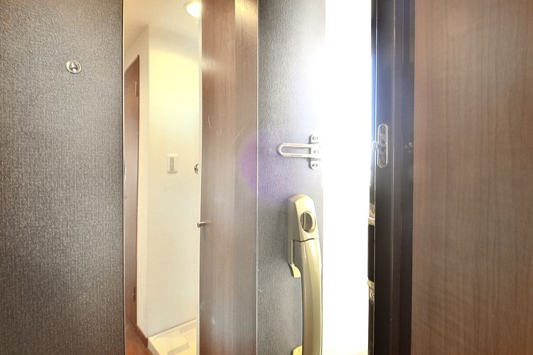 • 居室エントランスのドアに全身が映る鏡が付いています。お出かけ前の最終チェックに利用できそうです。