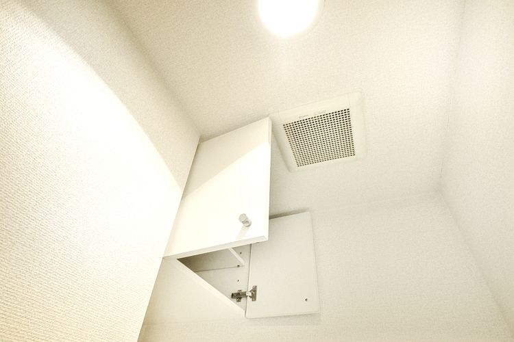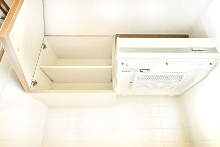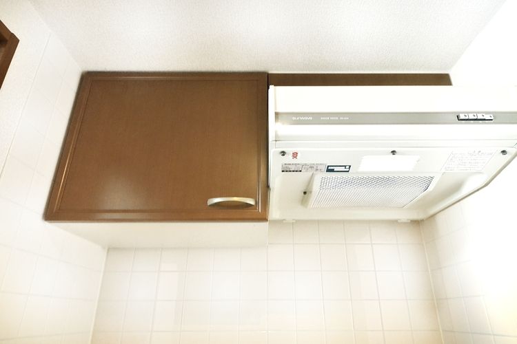 • 上にも収納スペースが付いています。しっかりしたレンジフードが付いています。