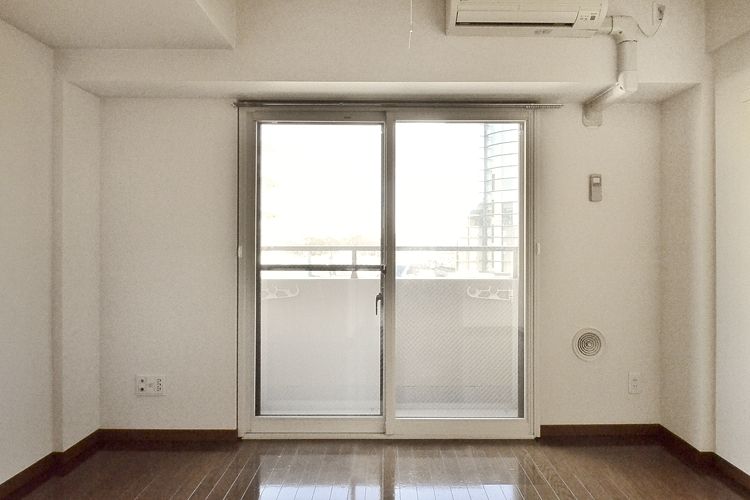 • 正面の窓です。バルコニーには物干し竿設置スペース・室外機があります。