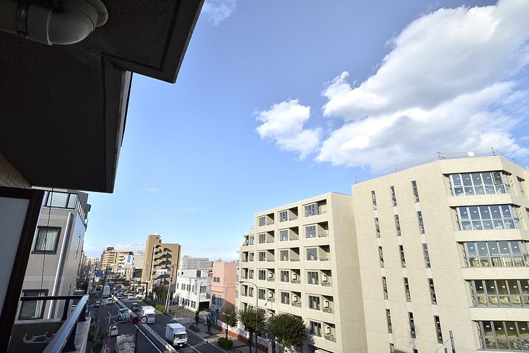 東急東横線「都立大学」駅から徒歩9分、東急目黒線「大岡山」駅から徒歩13分、東急目黒線「洗足」駅から徒歩16分の住宅街に位置しています。今回ご案内するお部屋は7階建ての5階部分。周辺に高い建物がない為、外廊下からの見晴らしは大変良く、天気の良い日は帰宅時にあかね色に染まった空を眺めることが出来ます。居室の窓は東側。こちらも眺望が良く、また前の建物が道路を挟んで建っているため、部屋に入り込む日差しがほとんど遮られません。
