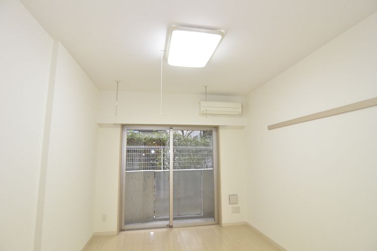 • 隣のバルコニーとは間仕切りで仕切られています。バルコニーには物干し竿台がありません。居室内に室内物干しが付いています。