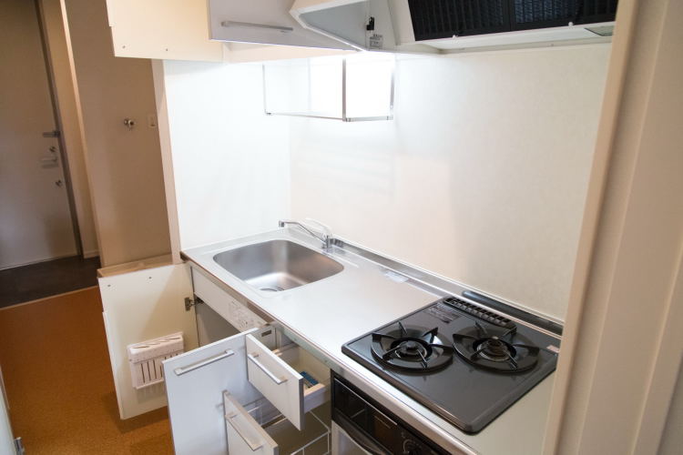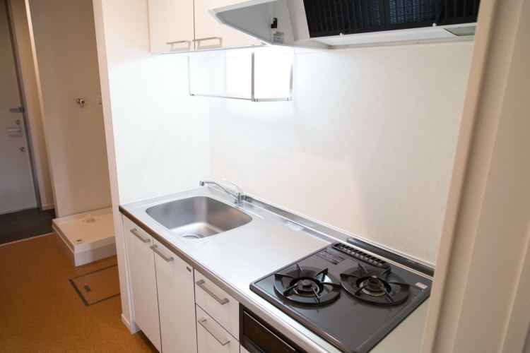 2口ガスコンロ、エアコン、クッションフロア、バス・トイレ別、温水洗浄便座、光ファイバー、室内洗濯機置場、収納有