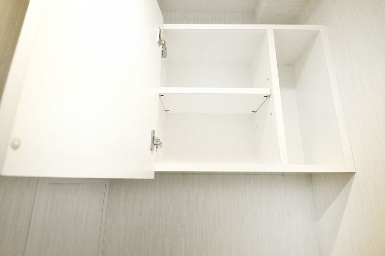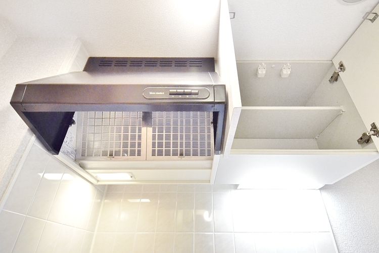 • 上にも収納スペースが付いています。レンジフードがしっかりしているのは嬉しいポイントです。