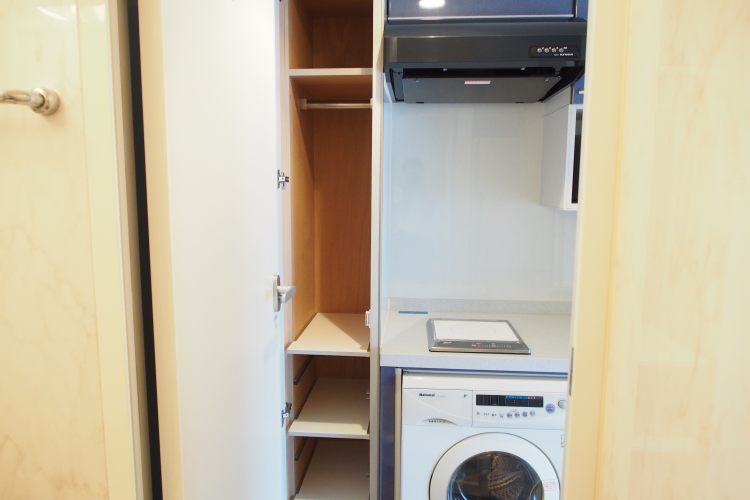 • キッチン下には包丁入れ、収納スペース・洗濯乾燥機があります。