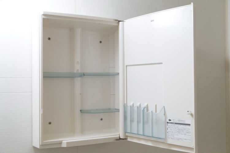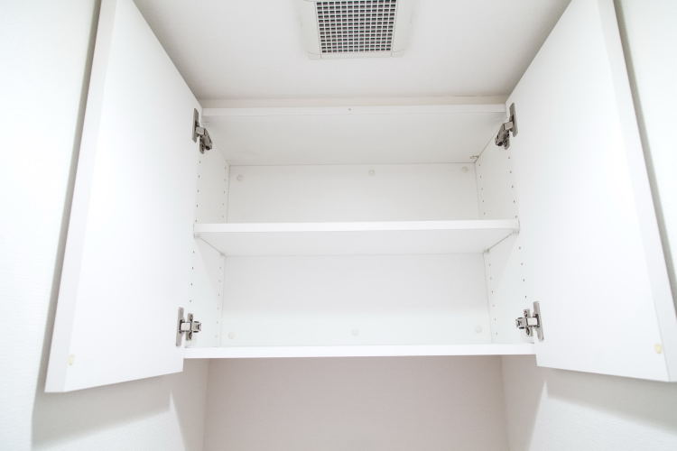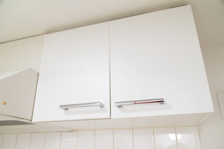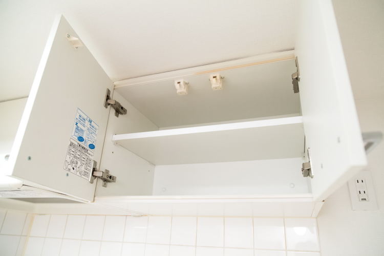 • 上にも収納スペースが付いています。レンジフードがしっかりしているのは嬉しいポイントです。