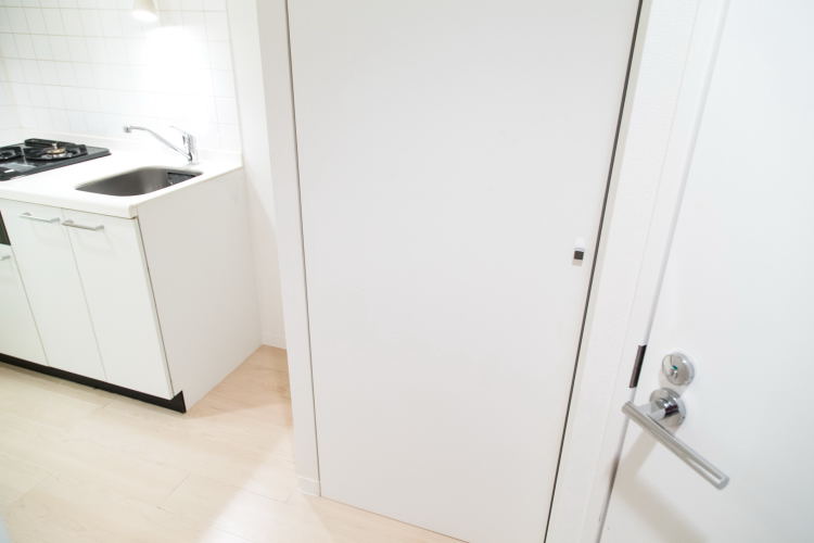 • 洗濯機置場にドアが付いています。洗濯機の音を少し遮断してくれます。