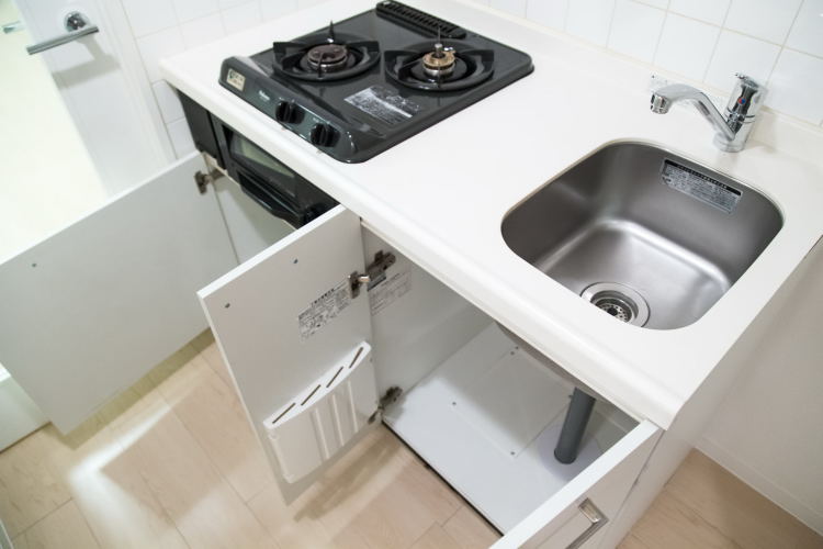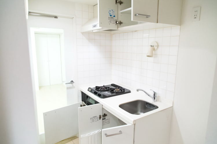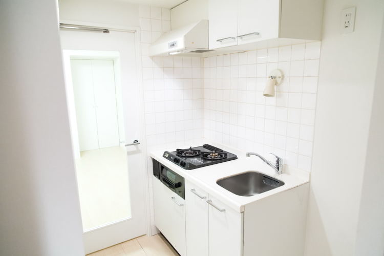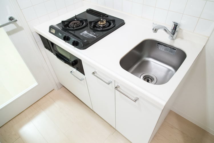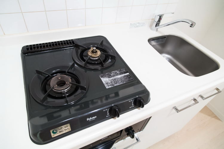 • 火力の強いガスコンロが2口、グリルが付いています。調理場もありますが、少し狭めの為シンク上を有効活用すると良さそうです。