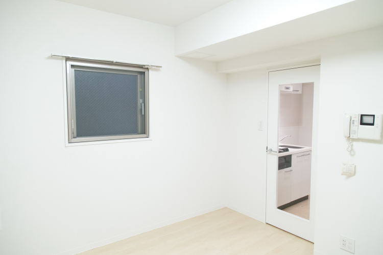 • キッチンと居室はドアで区切られています。ガラスドアの為、圧迫感がありません。また、居室内は二面採光です。
