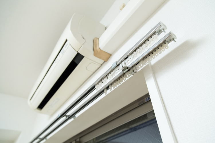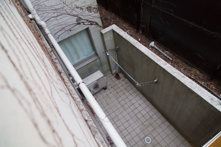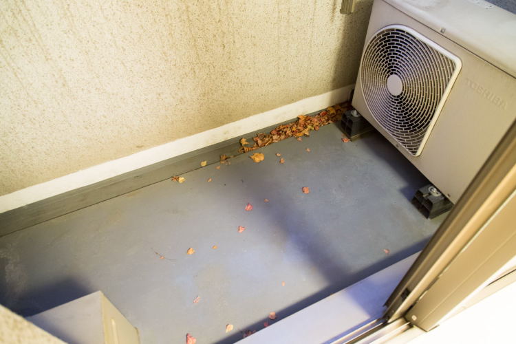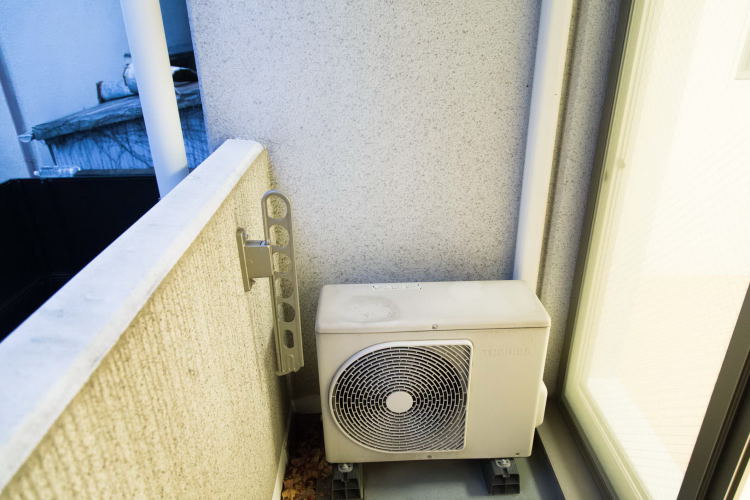 • 正面の窓からバルコニーに出ることが出来ます。バルコニーには室外機、物干し竿置場があります。