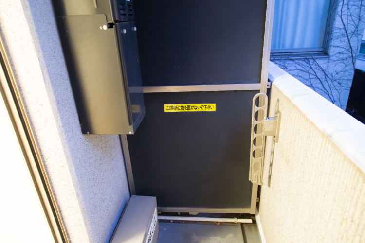 • 左居室のバルコニーとは間仕切りで仕切られています。角部屋の為、右側には居室はありません。
