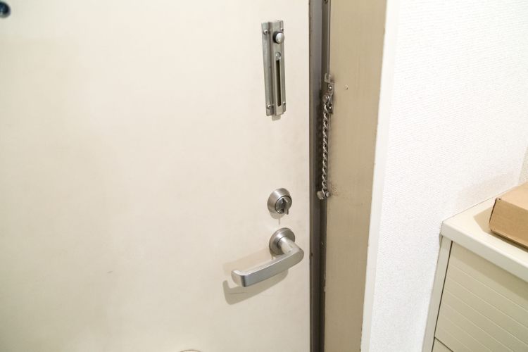 • 居室のドアはワンロックタイプ。ドアの内側にはドアチェーンとドアスコープが付いています。