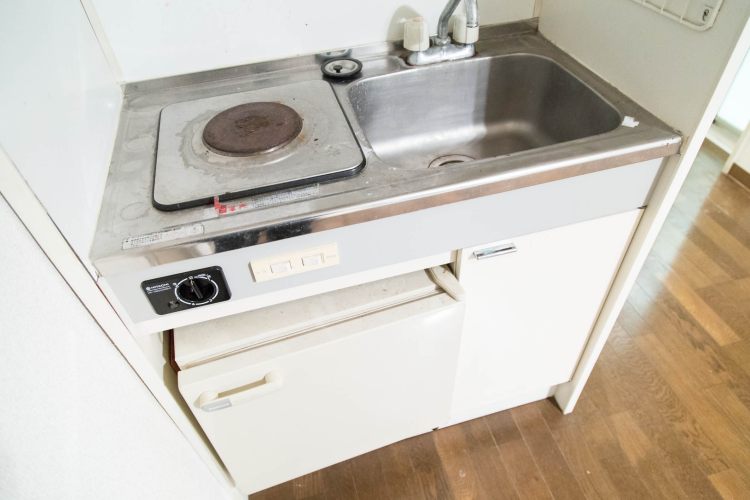• IHコンロが1口。作業スペースがない為、シンク上をまな板等でご活用ください。