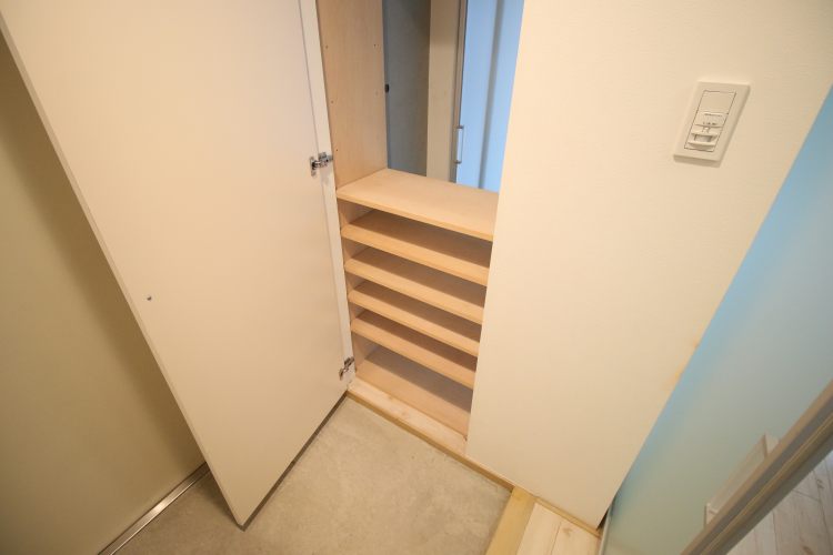 • こちらのクローゼットの奥はエントランスのシューズボックスに繋がっています。クローゼットとしては荷物が多い方には物足りないかもしれません。