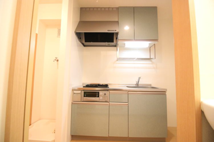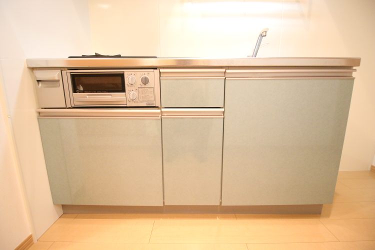 ・設備:浴室乾燥機付きの浴室、ウォシュレット付きのトイレ、グリル・2口ガスコンロ・シンクが広めの充実したキッチンが付帯しています。